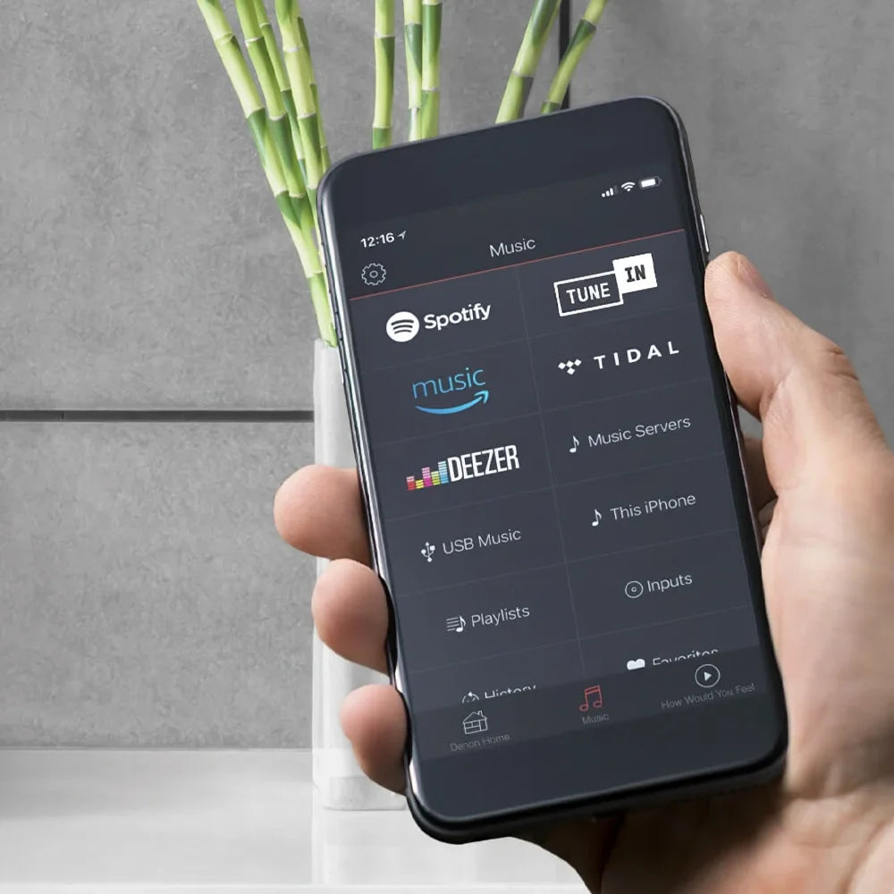 Disfruta de una conectividad sin límites con Wi-Fi, Bluetooth y AirPlay 2. Transmite tu música favorita desde plataformas como Spotify, Apple Music, Tidal, Amazon Music y más. La tecnología HEOS integrada permite la sincronización con otras bocinas Denon para un sonido multi-room perfecto.