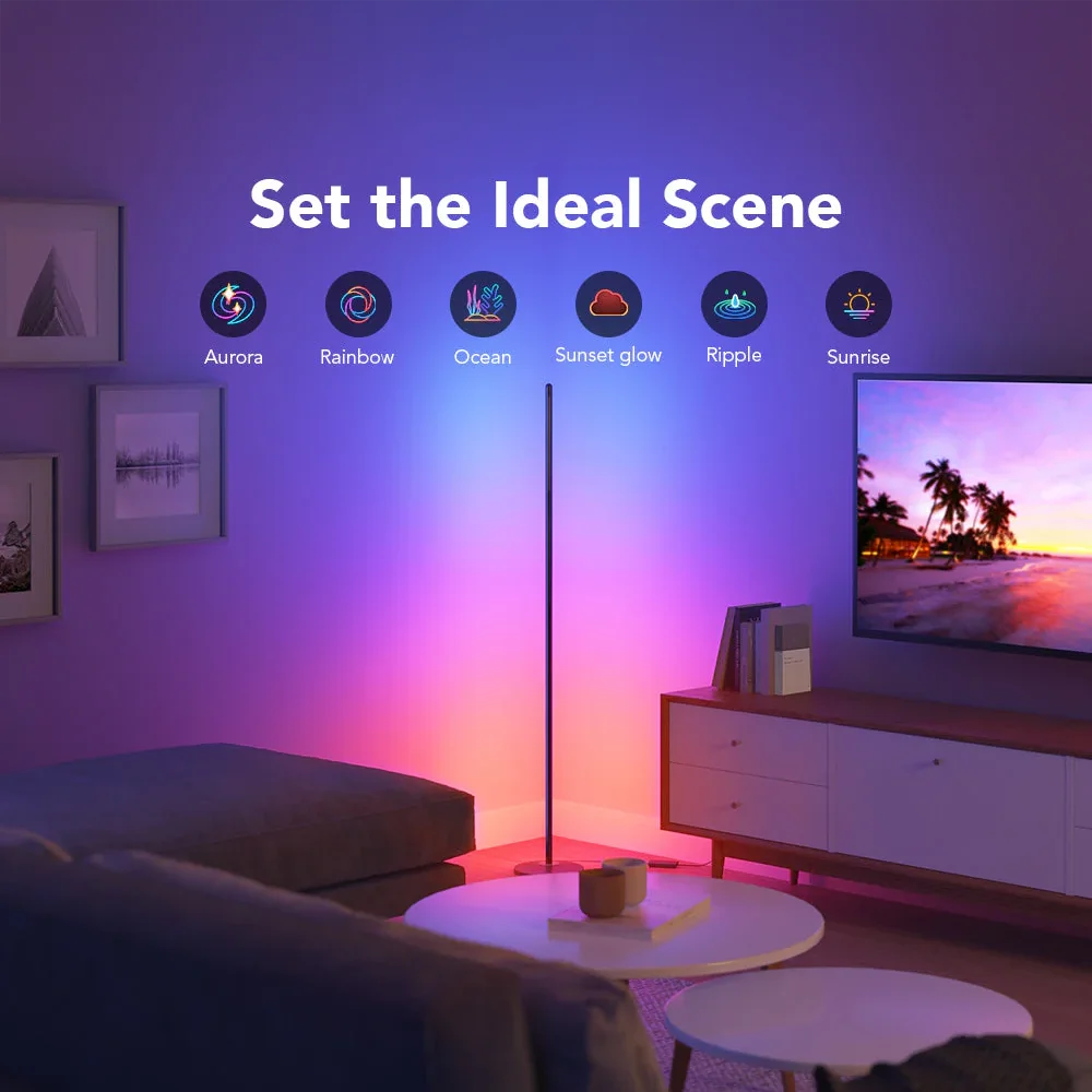 La Lámpara Led de Pie Govee ofrece iluminación RGBIC con colores vibrantes y personalizables, permitiendo crear ambientes únicos. Su diseño moderno y minimalista la hace ideal para salas, dormitorios y oficinas. Además, cuenta con modos dinámicos, sincronización con música y control inteligente mediante app y asistentes de voz.